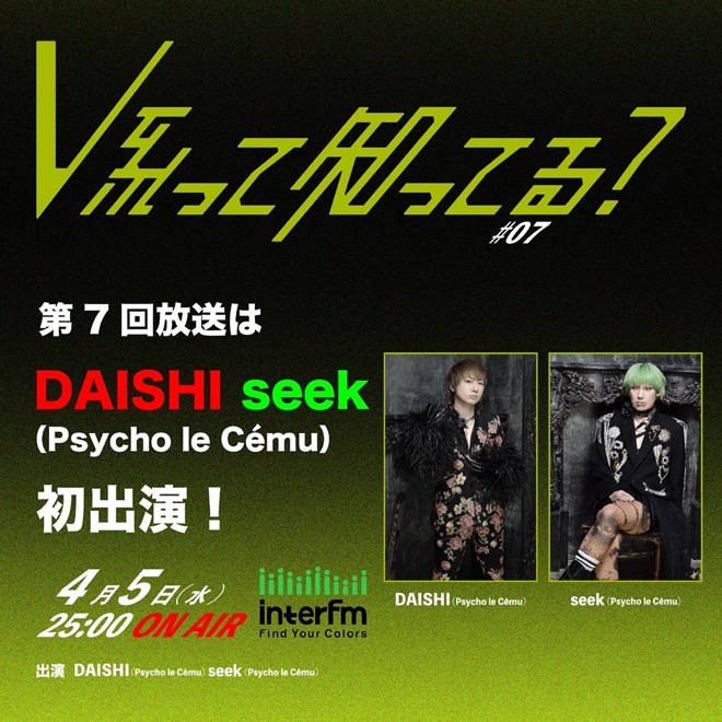 ラジオ番組『#V系って知ってる?』、Psycho le CémuのDAISHIとseekが語るオリジナリティの源