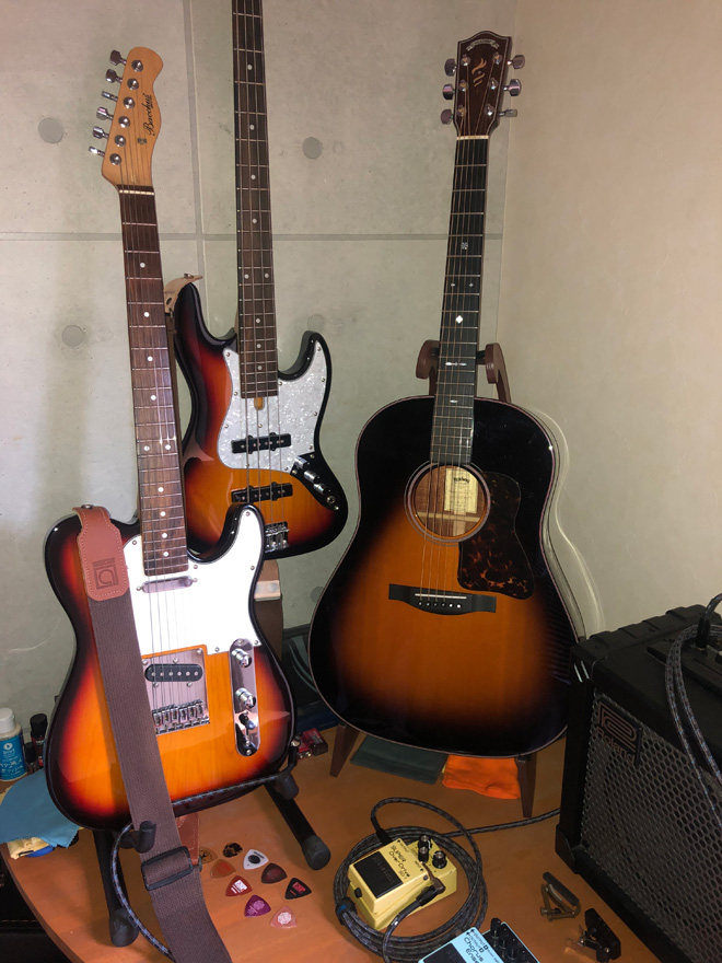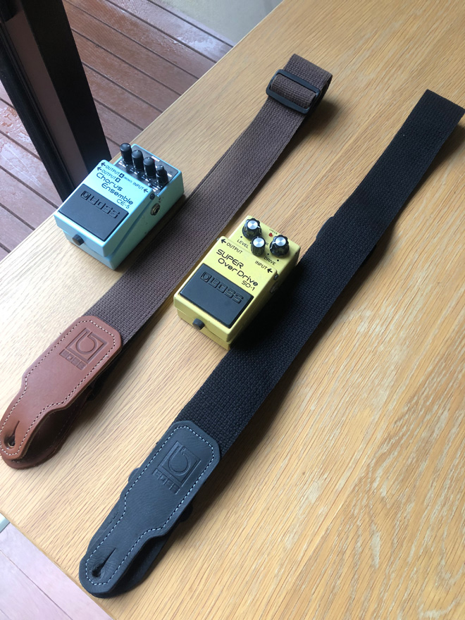 一味つながりで言うとローランド/ボスに新たな構成員が。新しいアコギ用に黒のストラップ!狙った通りの見た目になり満足。そして少し前にペダルをOD3からSD1に。繋ぎ順もコーラスを先にして、ドライブは歪みでなくアンプの音色変化用に使い方を変えました。これで満足な音になった気がします。あとペダルは電池駆動にしてるのですが、雑多なものじゃない物使うと全然変わりました!機械を動かすために使う電源じゃなく、直接音を作るものだと動画で知って、速攻で変えました。みなさんも先入観なしに色々試してみることをおすすめします!