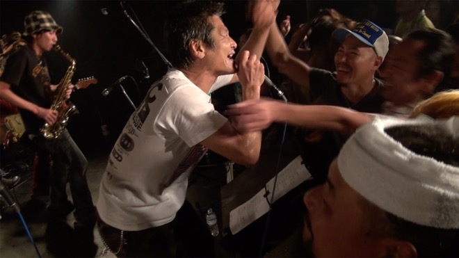 その上で、特にボーカルの伊藤耕の生き方に着目すれば、同じ人間として自由に生きることの意味を考えてしまう。映画では冒頭、彼の何度目かの出所シーンから始まる。最近ではいろんなラッパーが同様な場面をYouTubeで公開していたりするが、どんな強面ラッパーであってもカメラの前では衒いを隠せない。その点、伊藤は底抜けな陽気さで登場する。