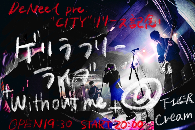DeNeelが4月5日、新曲「CITY」を配信リリースした。これを記念して、20時から東京・下北沢のCREAMでフリーライブ<New Single 「CITY」 Release Guerrilla Event〜Without me〜>を開催するという。