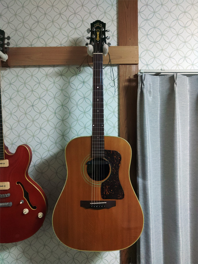 トップの傷が歴戦の数々を語っているようです。ギルドいいなあ。1970年代はマーティンやギブソンに並んで最も憧れるアコギだったなあ。子供ながらに漢ならD-55に決まってるって思ってました。そもそもよく通っていた居酒屋の名前がGuildだったという時点で、運命は決まっていたみたいですね。そもそもそのオーナーが漢だもの。で、オーダーしたというメインギターは何ですか?(JMN統括編集長 烏丸)