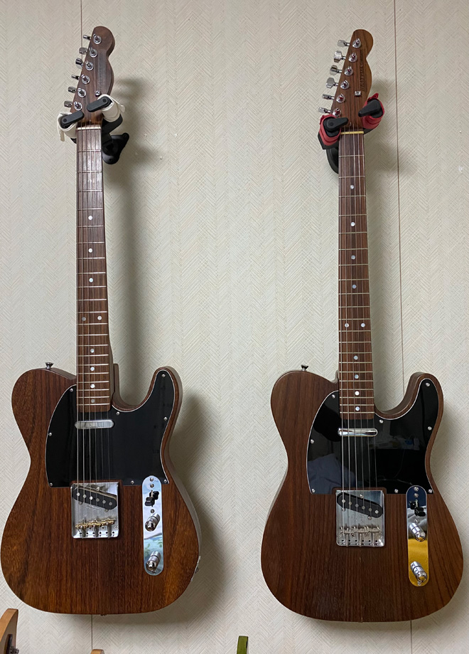 で、1号君はテレキャスらしさが有りlet it beのあの感じです。2号君はちょい軽くし過ぎたか?ちょっとシンラインぽい感じになっちゃいました。が、これは面白いなと気に入ってます。
