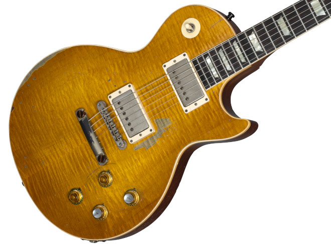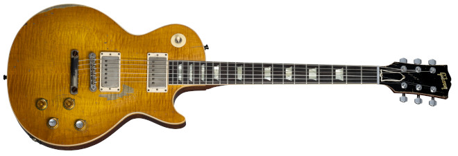 ギブソン・カスタムショップの『カーク・ハメット 1959 レスポール・スタンダード』は、マーフィー・ラボによって、この伝説的なギターと同じように芸術的にエイジング。インディアン・ローズウッド指板を採用。さらにギブソン・カスタムショップ“グリーニー”には、外装にブラウンレザー、内装にピンクを配したリフトン製のハードシェルケースが付属している。