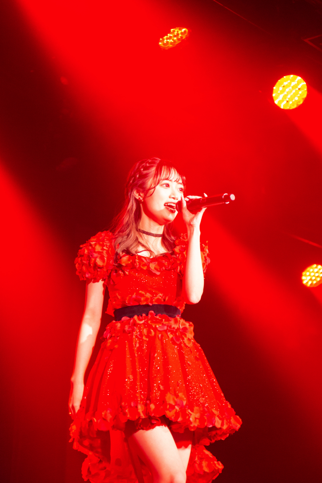 セットリストは、「ジッパー」「シャワーの後だから」など自身が公演やコンサートでパフォーマンスしてきた想い入れのある楽曲で構成。その中で唯一初披露となったのが、2期生の楽曲「自然渋滞」。「この曲好き」と公言しており、念願叶って初パフォーマンスとなったが、激しめのダンスをひとりで踊り切った後には「絶対にひとりで歌う曲ではない……」と息を切らして、笑いを誘っていた。