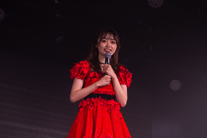 そして、ラスト1曲となったところで、ひとりきりのステージで「ここでご報告があります。私、中井りかはNGT48を卒業します」と、今年の夏で8年間の在籍となるグループからの卒業を決めたことを報告した。かつてソロコンサートで着用した真紅のミニのドレス姿の中井は、珍しく緊張する様子を見せながらも、「泣かないで」と涙ぐむ客席のファンを気遣いながら、ファンやグループへの感謝と「青春時計」がいかに大切な曲かを言葉を丁寧に選びながら伝えた。