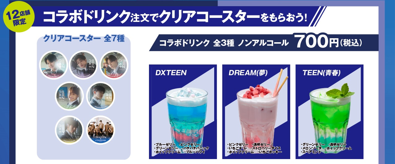コラボドリンクメニュー(全3種):「DXTEEN」「DREAM(夢)」「TEEN(青春)」