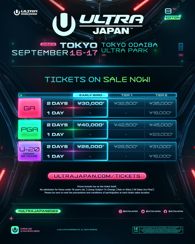 <ULTRA JAPAN>、フルラインナップ発表&日割り公開
