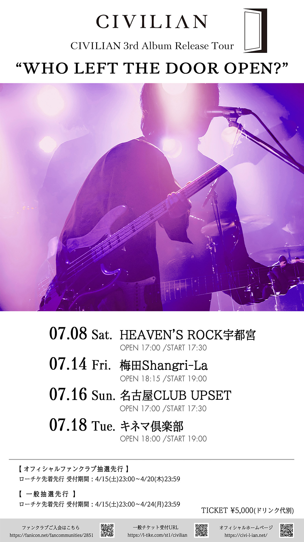 <CIVILIAN 3rd Album Release Tour “WHO LEFT THE DOOR OPEN?”>