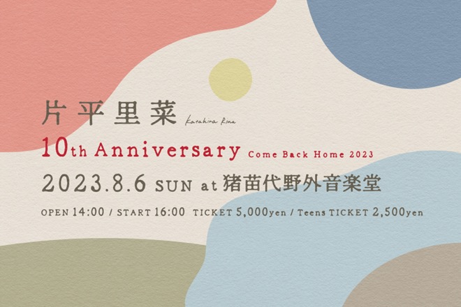 片平里菜が8月6日、猪苗代野外音楽堂にてデビュー10周年イベント<10th Anniversary Come Back Home 2023>を開催することが発表となった。