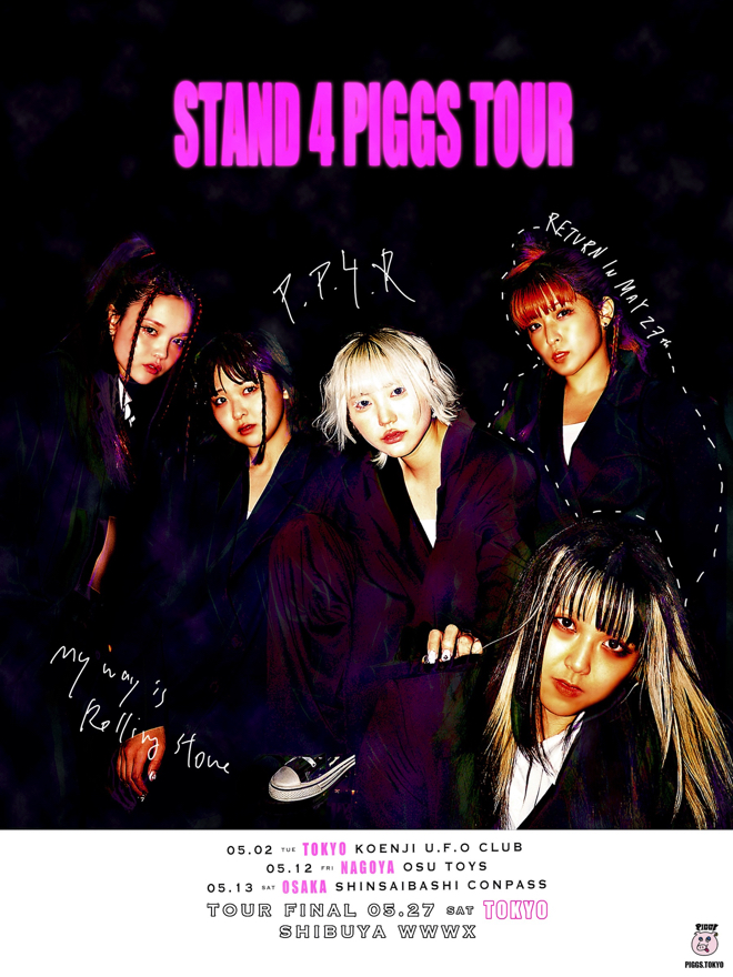 結成3周年記念日の4月19日に開かれる<PIGGS 3周年記念ライブ-P.P.4.R->にはプー・ルイも出演する。グループはその後、5月2日から<STAND 4 PIGGS TOUR>と題したツアーを開催し、対バンイベント等にも4人で出演する予定とのことだ。プー・ルイは<STAND 4 PIGGS TOUR>のツアーファイナルとなる5月27日の東京・渋谷WWW X公演よりライブに復帰する予定となっている。