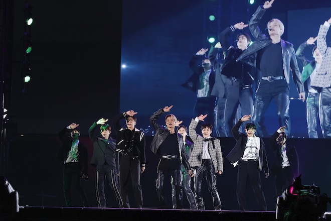 後半にはEXOの代表曲「Growl」「Love Shot」や日本デビュー曲「Love Me Right ~romantic universe~」「Coming Over」を次々とパフォーマンスし、客席は瞬く間に熱気に包まれた。そして、「皆さんにプレゼントしたい曲を歌います!」と、韓国で発売予定のアルバムに収録される「Let Me In」や、2019年にリリースした日本オリジナル曲「BIRD」を8人で歌唱した「BIRD -THE BEST Ver.-」がサプライズ披露された。