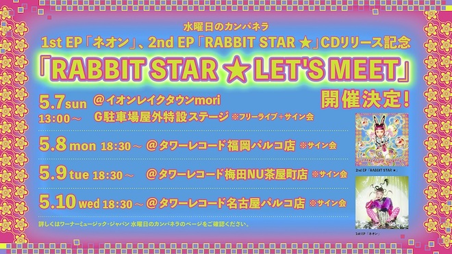 なお、水曜日のカンパネラは『RABBIT STAR ★』のCDリリースを記念したイベント<RABBIT STAR ★ LET’S MEET>を5月7日から開催する。5月17日からは全国ツアーもスタートする。