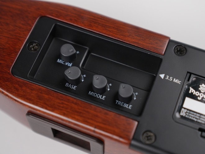 また本機には、一般的なギターのサウンドホールの代わりにBluetoothスピーカーを搭載しており、豊富で高音質なサウンドが得られる。Bluetoothスピーカーをオフにすれば一般的なサイレントギターとして使えるのもポイントだ。本機のBluetoothスピーカーとPCやスマホをペアリングすればBluetoothスピーカーとして使用することができ、好きな曲を流しながら一緒に演奏することも、録音機能を活用して音源と自分の演奏を一緒に録音することも可能となっている。