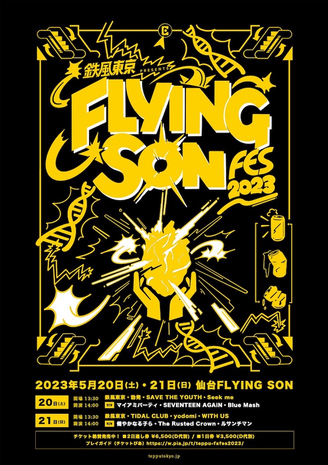 また鉄風東京が5月20日、21日の2日間、地元仙台で開催する主催フェス<鉄風東京presents「FLYING SON FES 2023」>の全出演者13組も発表された。