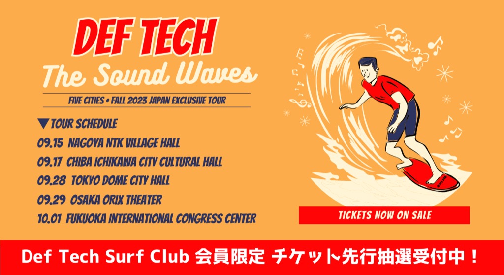 今夏も各地のフェスやイベントを席巻するDef Tech。ツアーに先駆け、最新アーティスト写真の公開と共にファンクラブサイトにてチケット最速先行受付もスタートした。