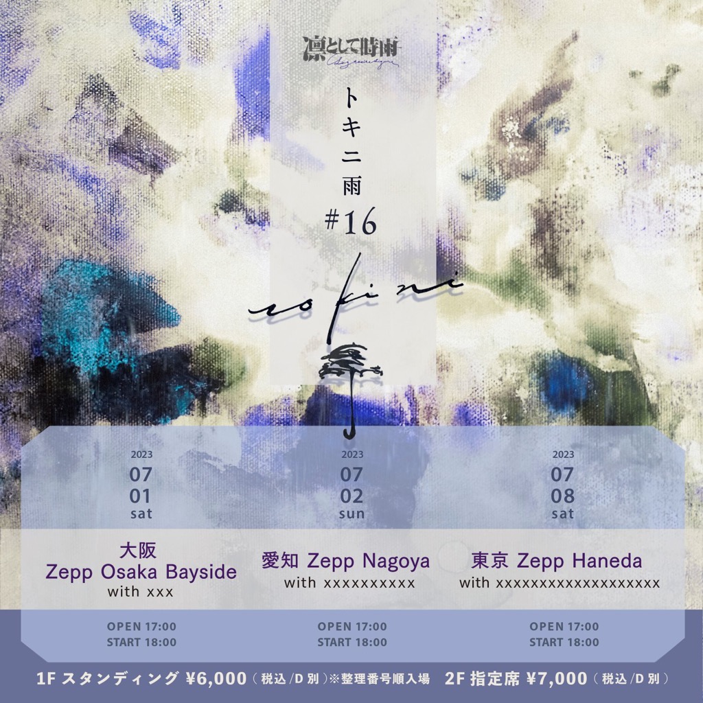 「トキニ雨」は、凛として時雨がゲストアーティストを招いて行うイベントで、2003年より続く自主企画。各公演のゲストは後日発表される。チケット先行予約の受付は22日20:00よりスタート。
