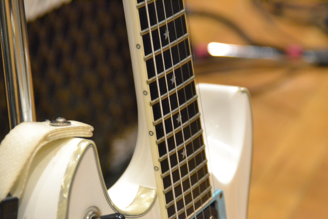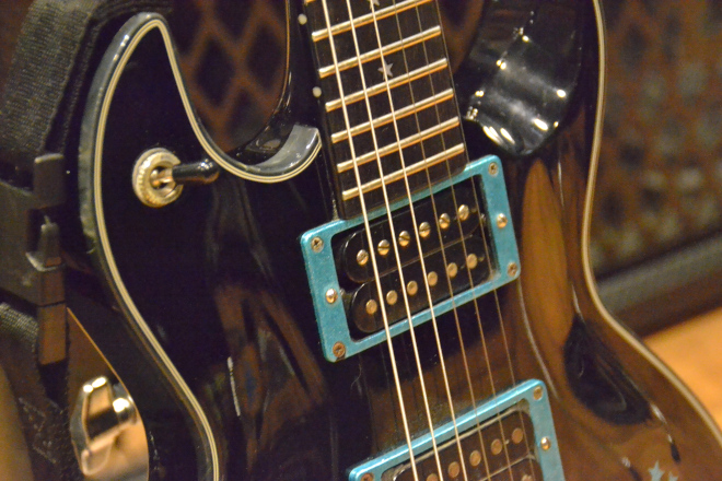 五十嵐:かまぼこです。ずっとSGやレスポールで来たので、幅が広いときついですね。