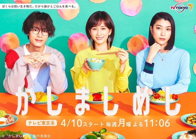 ドラマ『かしましめし』は、祥伝社『FEEL YOUNG』で連載中のおかざき真里による同名漫画が原作となっており、美大を卒業後、同級生の自死をきっかけに再会した千春(前田敦子)・ナカムラ(成海璃子)・英治(塩野瑛久)のアラサーの男女3人が、それぞれの人生に悩みながらも、みんなで集まっては賑やかな“おうちごはん”を囲み、やがて一緒に暮らしていく物語。