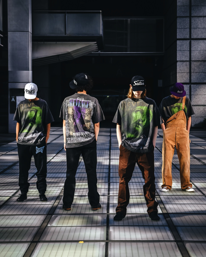 「©SAINT Mxxxxxx」ではこの日、ヴィンテージショップ「BerBerJin」のディレクターを務める藤原裕とのコラボレーションアイテムを発売する。藤原と「©SAINT Mxxxxxx」のデザイナー細川雄太とも親交の深いGReeeeNのHIDEの数あるコレクションの中から選ばれたヴィンテージTシャツを、同ブランドの感性でデザインに落とし込みヴィンテージ加工を施したというもので、RKによる撮り下ろしのビジュアルもGReeeeNのメンバー4人を彷彿させるような仕上がりとなっている。