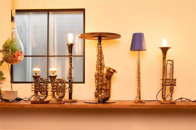 島村楽器で回収した廃棄楽器や耐用年数を過ぎた部品、また近隣の小・中・高等学校などからの依頼により引き取った廃棄楽器たちに、もう一度命を吹き込み、インテリアなど新たな形で活躍の機会を与える取り組み「楽器アップサイクルプロジェクト」。スタンドライト、サイドテーブルなどに生まれ変わった楽器インテリアを展示。