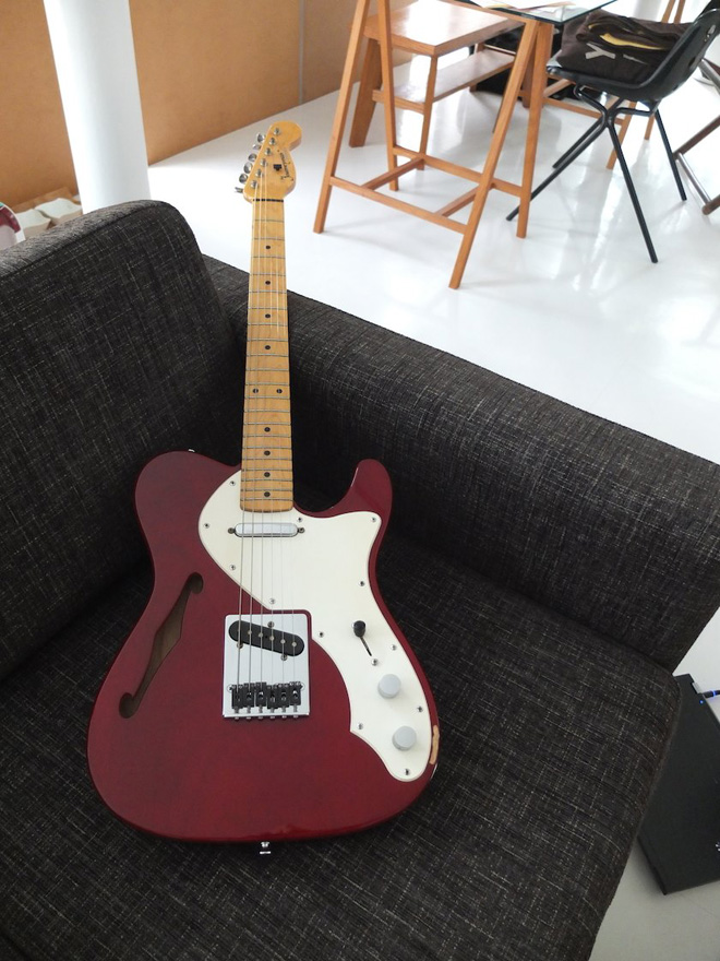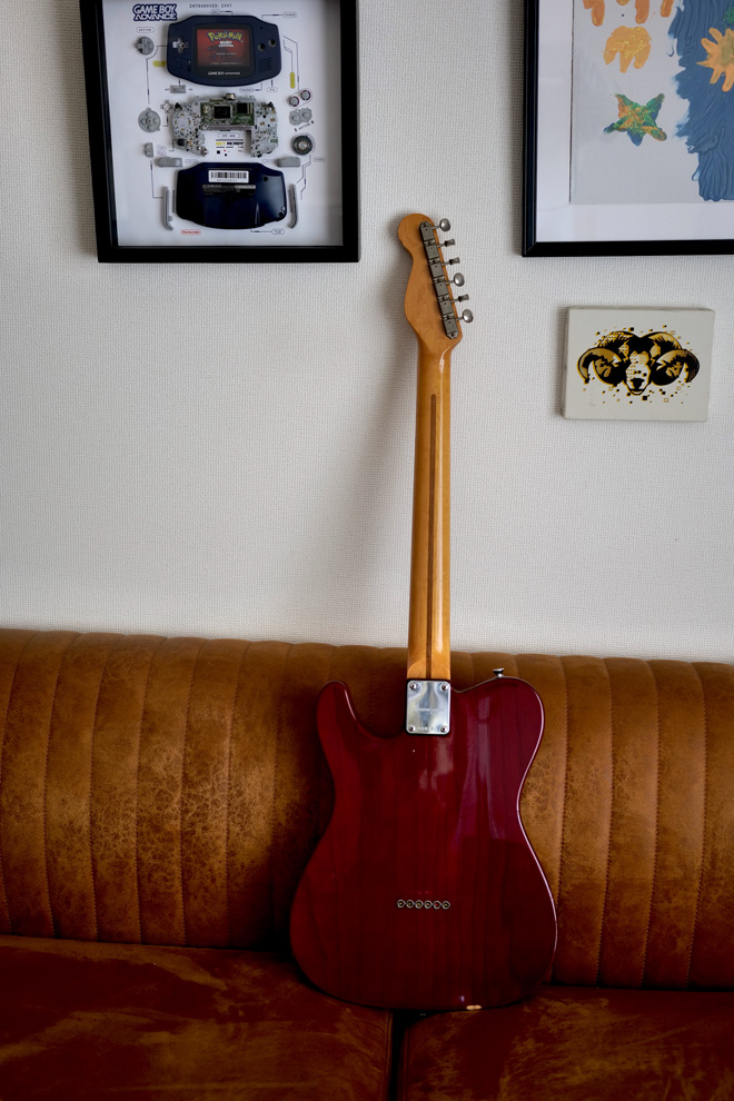 これがそれと同じギターなのかは今となってはわからず。買った時のスペックシートもないのですが、おそらく60年代のフェンダーシンラインをベースにしていて、PUはダンカン、ボディーはアルダーかなあ。烏丸編集長に細かい部分を見て解析してもらいたいですね。彼も佐久間さんにたくさんインタビューしていたと記憶しているので。