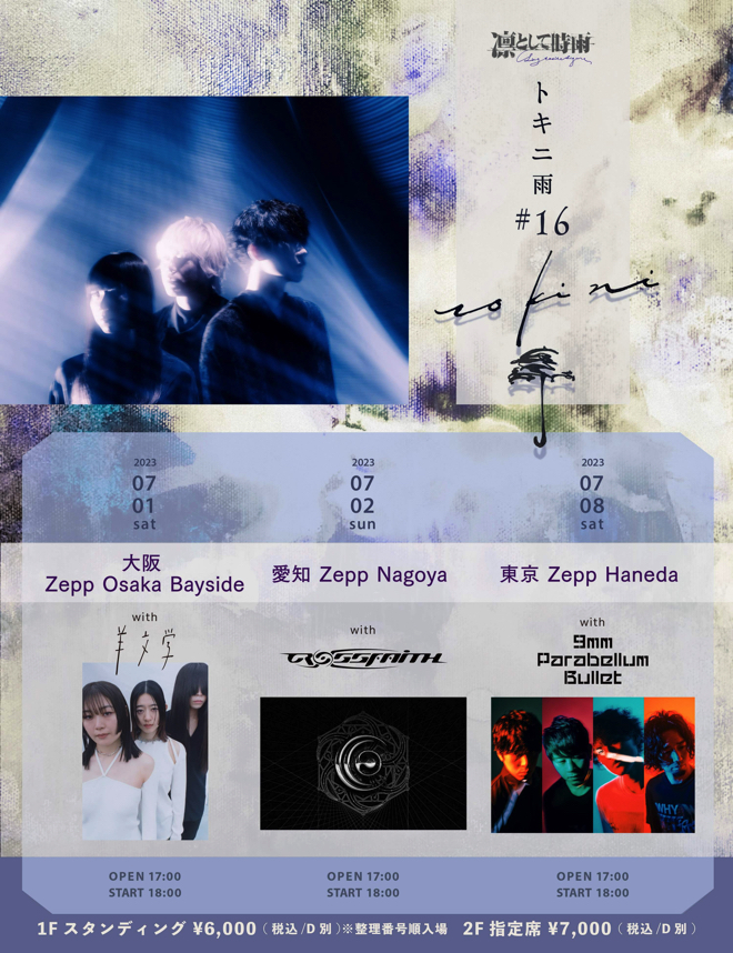 2003年から続く<トキニ雨>は、凛として時雨がゲストアーティストを招いて行う自主企画イベントだ。約7年ぶりの開催となる今回は、7月1日にに羊文学との大阪・Zepp Osaka Bayside公演、2日にCrossfaithとの愛知・Zepp Nagoya公演、8日に9mm Parabellum Bulletとの東京・Zepp Haneda公演が開かれる。5月7日23時までチケットの先行受付が実施されている。