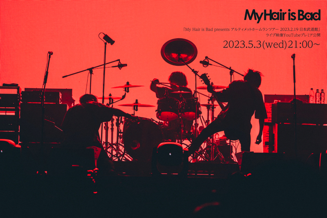 My Hair is Badが2月に開催した日本武道館公演のライブ映像『My Hair is Bad presents アルティメットホームランツアー 2023.2.19日本武道館』が、5月3日21時より公式YouTubeチャンネルでプレミア公開される。