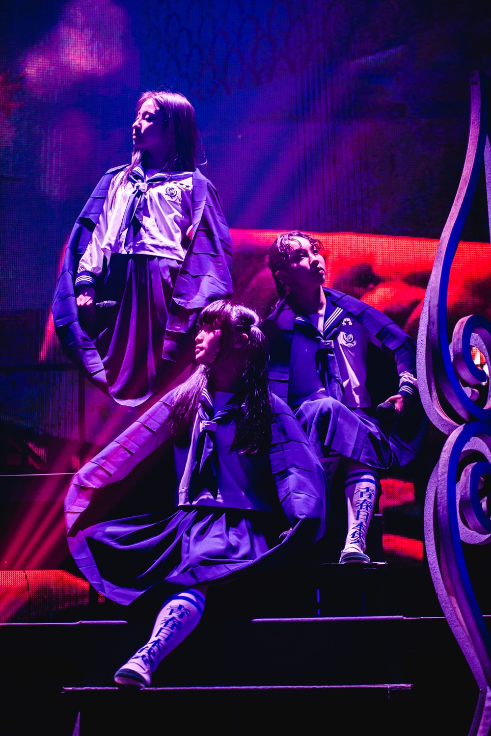 また、新しい学校のリーダーズならではの“肩車”や“ヘッドバンキング”などの激しいパフォーマンスを魅せる「最終人類」やアップテンポでポップなダンスが特徴の「The Edge」で会場は縦に揺れた。映像演出も華やかなシーンや、一転して不気味なシーンなど、新しい学校のリーダーズならではの独特さ。SUZUKAのMC「皆さん日常のこと、いろいろ発散して、気持ち良くなっていってください!」に会場は大きな盛り上がりを見せ、コールアンドレスポンスもお手の物だ。「WOO!GO!」ではSUZUKAの「動きたいですか!?」という掛け声を合図に、観客も拳を振り上げ会場全体の一体感もさらに高まった。