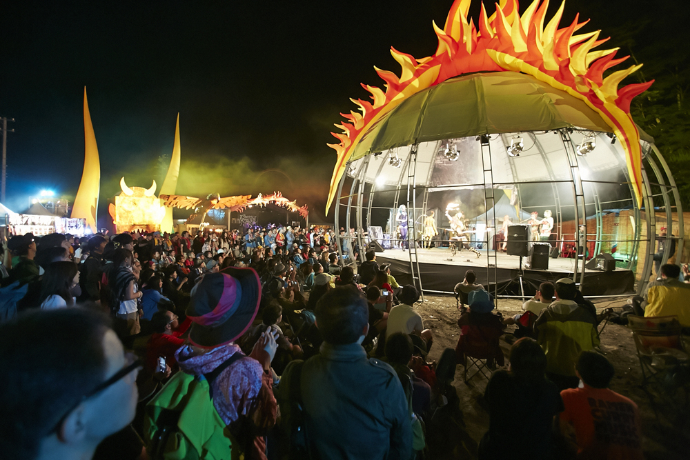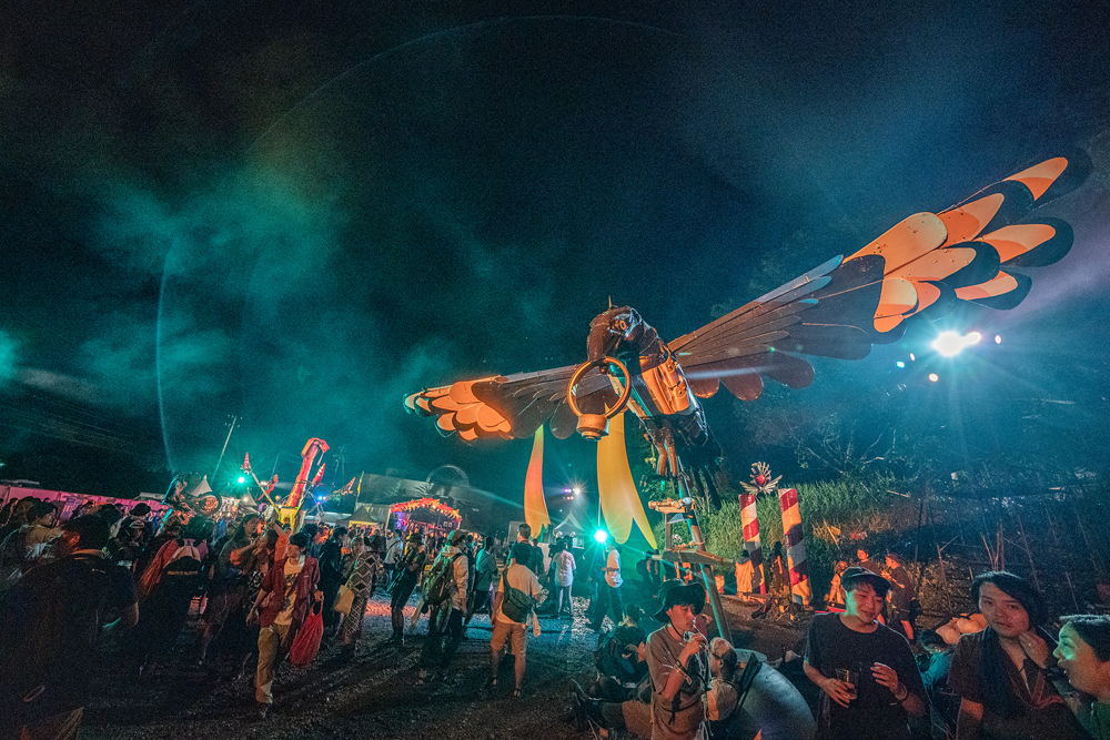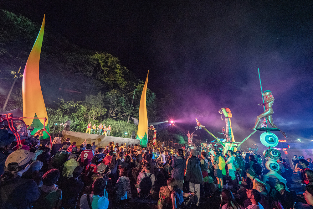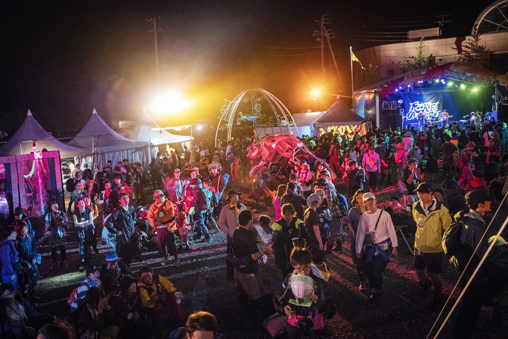 このエリアの元を辿ると、ロンドンのパフォーマンス・アートグループ“Mutoid Waste Company”のスクワット・パーティーの精神であるフリーダムとアナーキーをモットーとし、2002年に初お目見えした(初年度はジョー・ストラマーやキース・アレン=リリー・アレンの父がここでキャンプ・ファイヤーをした)。今や新人バンドの登竜門的ステージと呼び声高い「ROOKIE A GO-GO」も、コロナ禍により会場のレイアウトが変更されるまでこのエリアに設けられ、夜通し猛々しいフレッシュなエネルギーが放たれていた。これまでASIAN KUNG-FU GENERATION、King Gnu、サンボマスター、Suchmos、羊文学、CHAIなど錚々たるアーティストが出演してきた「ROOKIE A GO-GO」で青田買いに興じるのもフジロックの楽しみのひとつである。