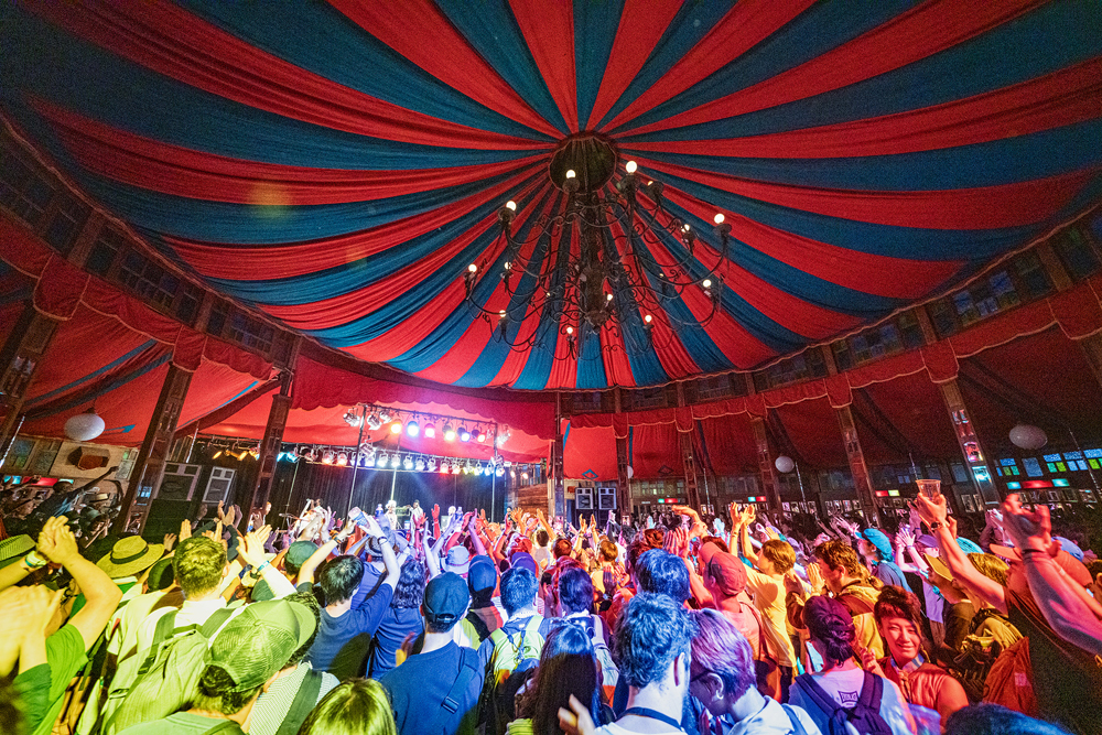 フジロックに「THE PALACE OF WONDER」が4年ぶりに帰ってくる。入場ゲートの手前に広がる入場無料のエリアでありながら、音楽からサーカス、ポールダンス、お酒なども楽しめる大人の遊び場としてファンの多いTHE PALACE OF WONDERは、フジロックの中にあるフリー・フェスティバル。神は細部に宿ると言われるように、この入場無料の場外エリアの存在にこそ、フジロックは別格の音楽フェスだと思い知った人は多いだろう。それほどまでに、なんてロックで懐の深いフェスなのだろうか、そしてなんてこの世界は楽しい刺激に溢れているのか、といつも感動を覚えたのがTHE PALACE OF WONDERである。