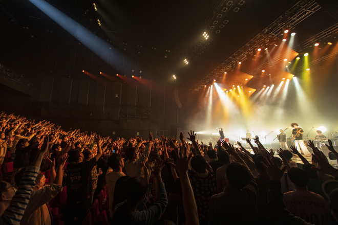「本日はよろしくお願い致します。私もちょっと天才なんで、眉村さんそっくりで(笑)。なのでどうしてもひとりぼっちになってしまいがちなところを、こうして2マンに誘っていただいたことを大変光栄に思います。ありがとうございます! 本当の孤独の救いって私の中では孤独じゃなくなることじゃなくて、孤独と孤独が両立してるみたいな状態で一緒にいるってことなので、今日の2マンはすごく理想的だなと思ってます。楽しい夜にしたいので、みなさんも楽しんで帰ってください!」という挨拶を経て、再びギターを弾き始めた大森。歌詞の中に出てくる《さっちゃん》を《ちちゃん》にして「さっちゃんのセクシーカレー」を1コーラス歌った後に「ハンドメイドホーム」を披露したが、ギターを自由自在に奏でながら伸び伸びと響かせる歌声が眩しかった。続いて届けられた「絶対彼女」は、「お前が一番かわいいよ」「私が一番かわいいよ」というフレーズを各々何度も交わすコール&レスポンスが称賛と自己肯定の平和なループと化しながらスタート。「みんなで歌うよ!」という大森の呼びかけに応えて爽やかな大合唱が途中で起こったが、「おっさん!」という細かな指定が入ると、野太いトーンの《絶対女の子がいいな》が会場の空気を脂っぽいものに塗り替えた。無邪気なコミュニケーションができるライブの現場が戻ってきたことを再確認できて、とても嬉しい気持ちになった。
