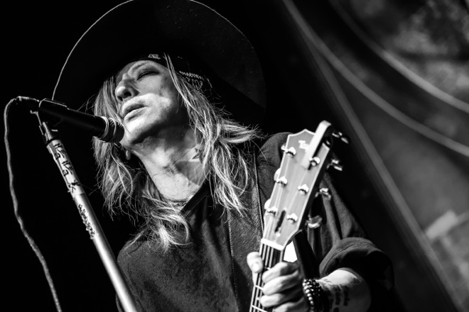 それで、こうしたことも含め全ての面で感じたのが、この人の(今の)音楽は「終わらない」ことが軸になっているのだなということだった。完全燃焼するというよりも燃え続ける、その上で圧倒的な力を維持しつつ変化し続ける。アンコール後最初の弾き語りはその好例だろう。シンプルなコードを反復し続けるギターとそこに乗る歌だけで延々聴かせることができてしまうのは、圧倒的な鳴りの良さとロングスパンを保たせる気の長い時間感覚があるから。こうした時間感覚は先述の即興展開を支えるものでもあって、簡単には終わらない引き伸ばし方が固有のブルース感覚として活きている。