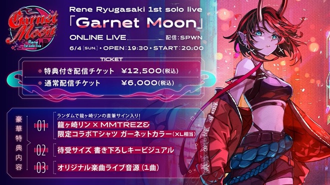 VTuberの⿓ヶ崎リン、初の有料オンライン3Dライブ<Garnet Moon>はMMTREZ&が制作