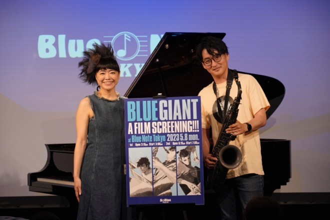 シリーズ累計1,100万部突破の大人気漫画「BLUE GIANT」を原作とするアニメーション映画作品『BLUE GIANT』。5月8日(月)、作品の中に登場するジャズの名門クラブ“So Blue”のモデルでもある Blue Note Tokyo(東京・南青山)にて『BLUE GIANT』のスペシャル上映が行われた。