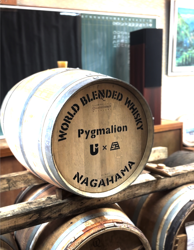 メンバーの皆様ともブレンドを一緒に決めることが出来、非常に光栄でした。ウイスキーのブレンドとは様々な原酒を使用しそれぞれの個性を響かせる役割を持ち、例えるならバンドアンサンブルと少し似ているところがあるかもしれません。私はその場に居合わせて感じたことは、メンバー各位が「楽曲」を制作している姿とリンクしたのを覚えております。ピグマリオンの世界観を浸透させるため音楽熟成を実施。更に深みを纏ったウイスキー「Pygmalion」が完成致しました。