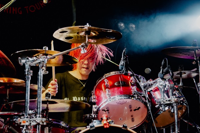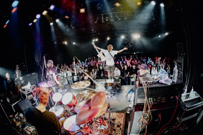 またMCでは、「コロナ禍に作った曲たちを成仏させたい」とも語っていたw-shun。2021年に配信リリースもした「MERRY GO ROUND」も5曲目にプレイ。もともとラウドなその曲は、成仏どころか、さらに生命力を強めながらオーディエンスを激しく揺らした。