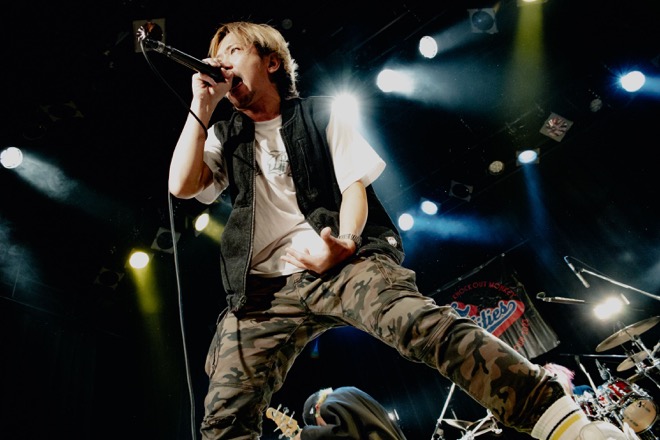 オーディエンスの気持ちをかき立て続けながら「Paint it Out!!!!」からライブは後半へ突入した。ライブハウスでナマで浴びる音、全身に響いてくる曲、一瞬ごとの全てがエキサイティングなライブパフォームと演奏ぶり。肩車を作ってはしゃぐオーディエンスもいれば、それを即興で歌にしてコール&レスポンスも起こすKNOCK OUT MONKEYもいる。さらに「Scream & Shout」では自ら客席フロアに飛び込んで歌い叫ぶw-shun。全員を笑顔にさせる事件の数々が、ライブハウスで繰り広げられていった。