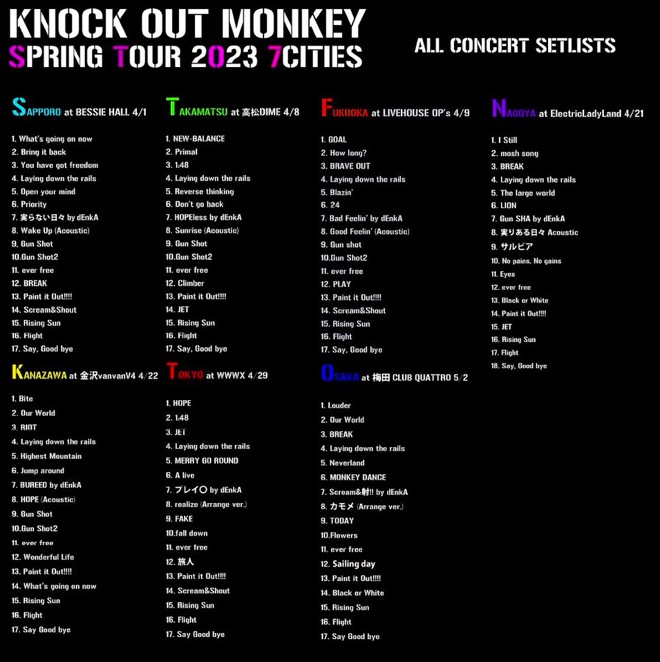 KNOCK OUT MONKEYが2023年4月から5月にかけて全国ツアー<SPRING TOUR 2023 “7CITIES”>を行なった。