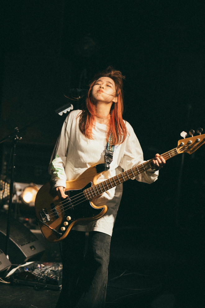 ちとせみな(Vo/Gt)の「最高のライブにします!」という宣言からライブはスタート。1曲目からバンドの演奏は力強く、思いきり楽器を掻き鳴らすメンバーは終始笑顔だ。充実したツアーをまわれていること、そして「ライブハウス楽しんでこうね!よろしく!」と挨拶する彼女たち自身が誰よりもこの場を楽しんでいることが早速伝わってきた。つい最近、人生で初めてマイドラムセットを購入したもりもとさな(Dr/Cho)は、ツアー3本目の新潟公演から新たな相棒とともにライブに臨んでいて、旅とともにドラムの音が育っていくのを楽しみにしているそう。全国各地のファンと作ったサウンドが今後のカネヨリマサルを形作る一部になるだなんて、とてもロマンティックだ。