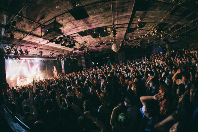 熱量の高い演奏を前に、観客は拳を上げて大盛り上がり。さらに、コンサート開催におけるガイドラインが緩和されたため、今回のツアーからマスクを着用した上で観客の声出しもOKに。疾走感溢れる「二人」では、高まる気持ちを体現したバンドの演奏に誘われる形でフロアからシンガロングが起こった。また、声出しOKということは、コール&レスポンスももちろん可能。「リキッド、元気ですか?」(いしはら)、「イェーイ!」(観客)、「気持ちいい! もう1回やっていい?」(いしはら)といったやりとりが微笑ましい。