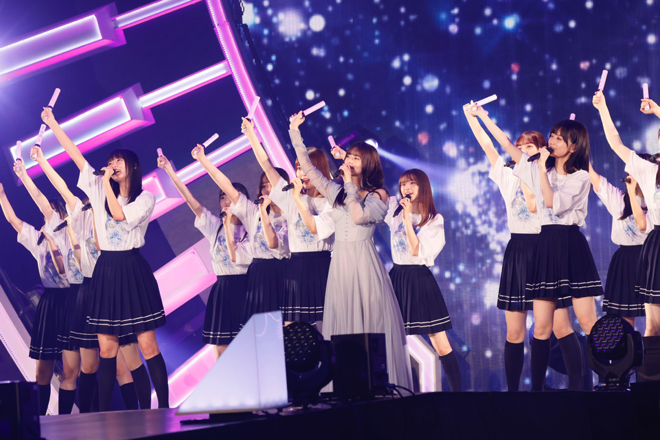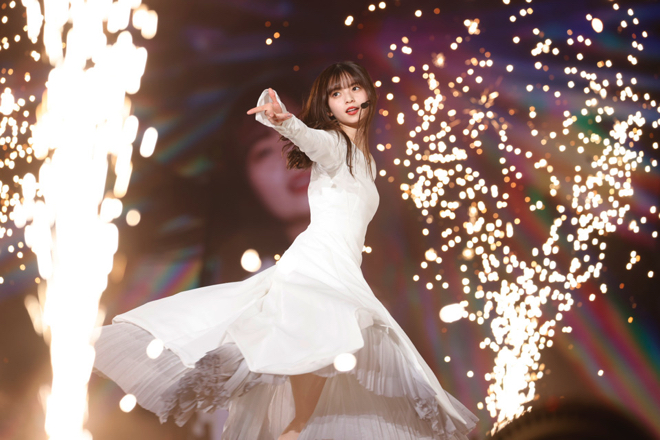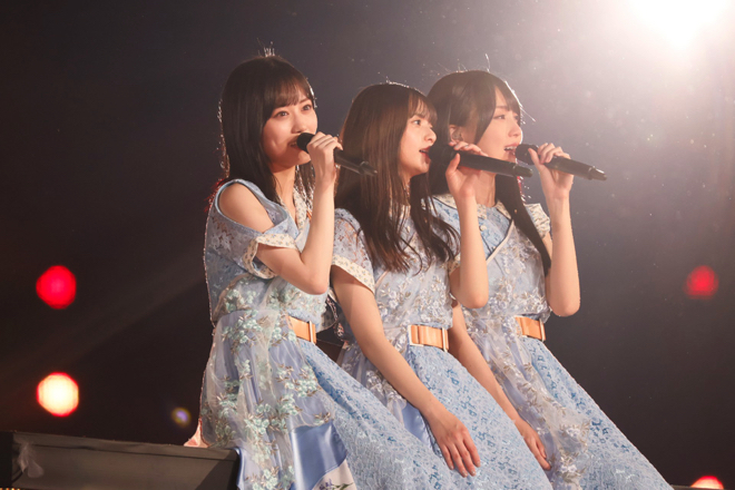 その後、映像を通じて「どうやったらこの人たち(現メンバー)の未来につながりつつ、私もいい旅立ちができるかを擦り合わせるのが難しくて。卒コンなので、どうしても私がめちゃくちゃ出ているんですけど、その中でも満遍なくみんなしっかりと出してあげたいし、絡みたいし、ちゃんと全員と目が合うようにしたい」と齋藤からこの日のセットリストの趣旨が告げられると、「私、起きる。」「のような存在」「僕のこと、知ってる?」と、齋藤に3〜5期生を交えたスペシャル編成で披露。今後二度と見られない組み合わせと選曲に、イントロが鳴り響くたびに客席からはどよめきの声が上がる。また、続くブロックでは現在のアンダーメンバーを携えて、齋藤が初めてセンターを務めたアンダー曲「扇風機」や「あの日 僕は咄嗟に嘘をついた」、3〜4期生とともに「Hard to say」をパフォーマンスして、緩急に富んだセットリストで会場を沸かせ続けた。