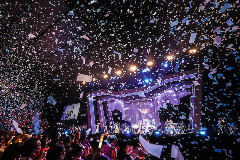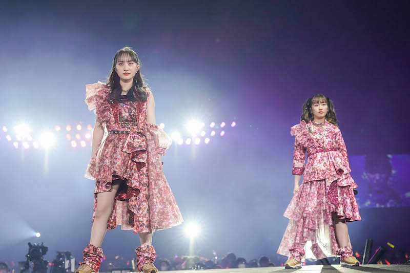 センターステージでのMCでは、大きなライブ会場でのお決まりの「アリーナ!」という呼びかけを誰が言うかじゃんけんで決めるなど、ももクロらしいワチャワチャした場面も見られた。その後、「MYSTERION」「BIONIC CHERRY」と続き、「はいはいはーい!」という佐々木によるコール&レスポンスから「コノウタ」へ。最新アルバムからファーストアルバムまで聴き比べられる、15年の歴史を感じられるようなブロックとなった。