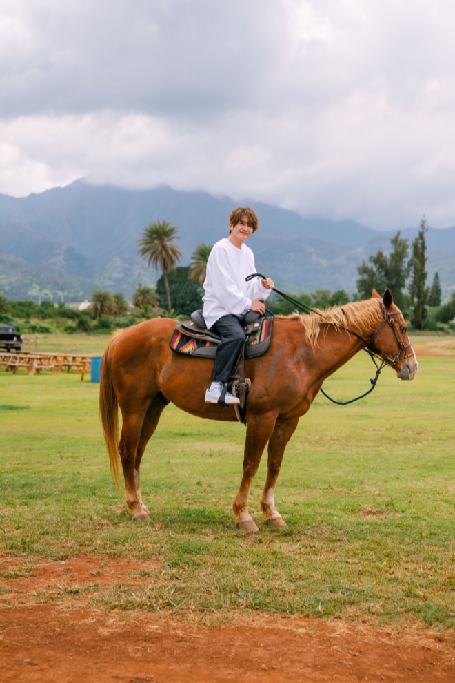 Nissyは、世界最大の旅客機”FLYING HONU”の魅力を伝えるとともに、ハワイを訪問。ノースショアのワイアルアにある、ノースショアステーブルズに足を運び乗馬体験や、植樹体験を行った。