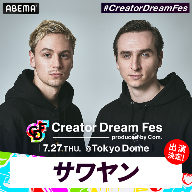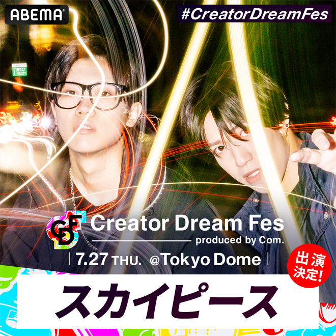ABEMAが2023年7月27日(木)に東京ドームにて開催するコムドット総合プロデュースによるライブイベント<Creator Dream Fes 〜produced by Com.〜>の出演ゲストが発表された。