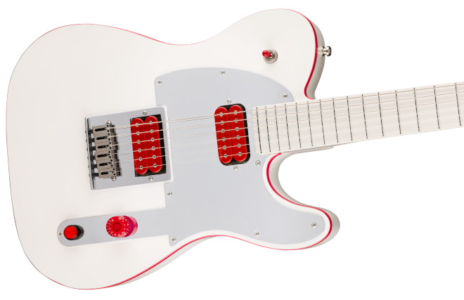 『John 5 Ghost Telecaster』は、優れた演奏性を提供する9.5インチラジアス指板とナロートールフレットを採用したカスタムネックプロファイル、バランスのとれた滑らかかつ透明なトーンを奏でるアルダーボディ、アクティブピックアップのサウンドをパッシブで再現できるように設計されたDiMarzioのモダンなミディアムハイゲインD ActivatorハムバッカーといったJohn 5ならではの特徴的な仕様を備える。また、オールホワイトに、赤のバインディングとアクセント、そしてミラー仕上げのクロムピックガードによって、他のギターとは一線を画す類のないルックスとなる。