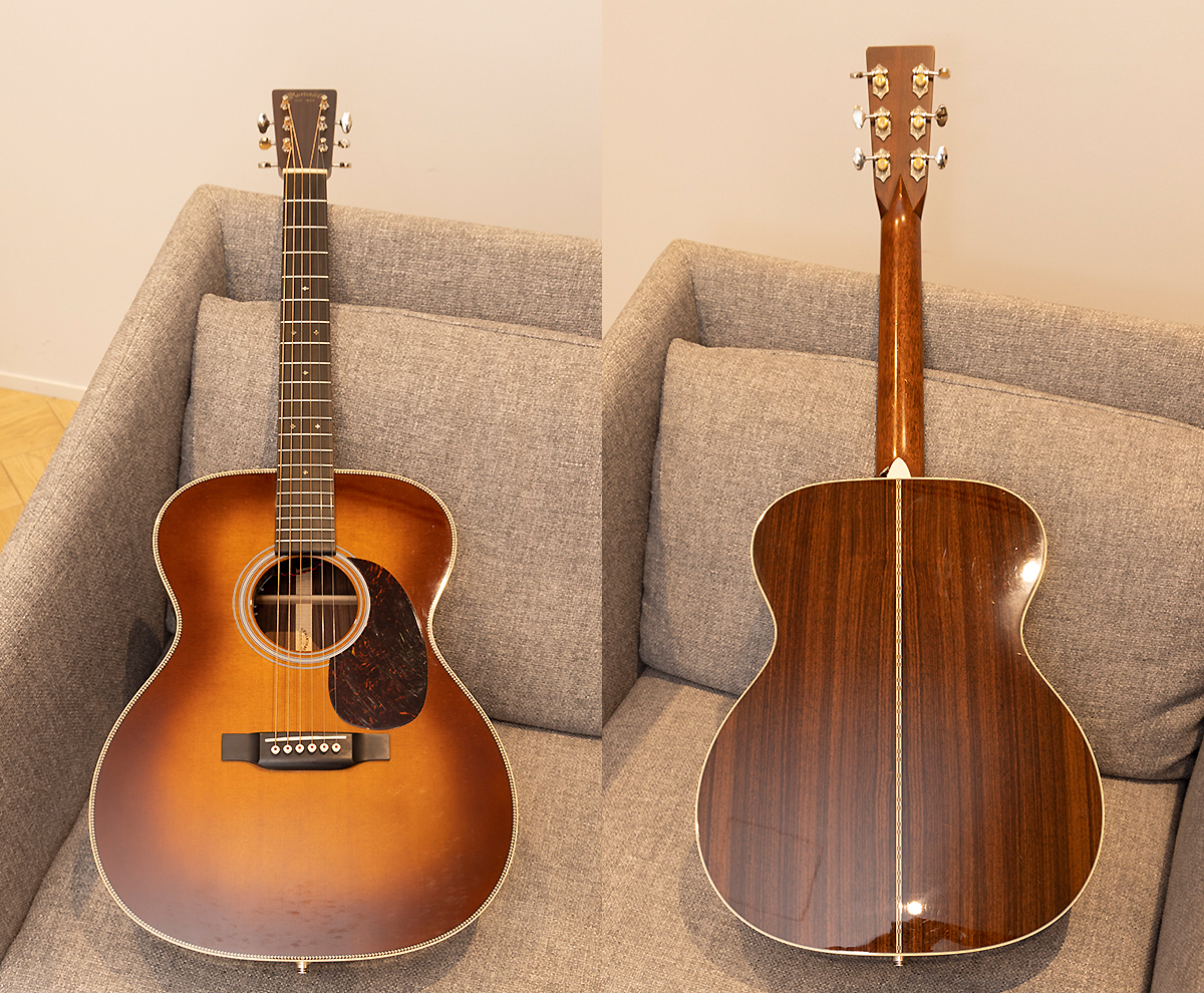 2021年冬に入手した自身初のマーティン製ギター “00-28”が現在のメイン。「この形で、黄色(ナチュラルカラー)ではないこの色は、日本に2本しか流通していないって、楽器店の方がおっしゃってました」とのこと。以前はコール・クラーク製のアコギを使用していた由薫だが、「sunny(※由薫命名“00-28”の愛称)は今のところ、めちゃくちゃ優等生です。あまりクセのない音色で伸びやか。バラードを弾いたときに私の声と相性が良い気がするんです。コール・クラークも相性が良かったんですけど、ライブのたびに原因不明の故障というか、毎回壊れるようになってきちゃって(笑)」。