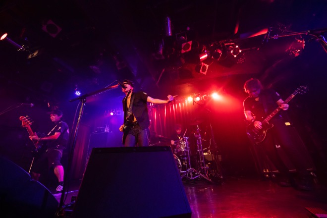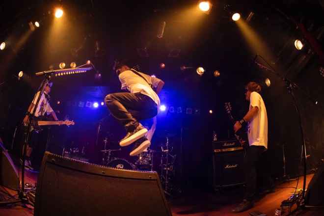 「今日は雨だったけど、青空を思い描いてやってみましょうか」と青い照明の下、SHINPEIが歌ったのは思い出と希望を浮かび上がらせる爽やかでメロディックな「BLUE SKY BLUE」。Jongがメインボーカルをとり、上手でSHINPEIとShunpがジャンプ、春風を運んでくるような軽快さで響かせた「PROLOGUE」。解き放たれた空気の中、シンプルなアプローチで鳴らされたエモいメロディの「REACH YOU」。フロアが手を突き上げ、ジャンプで盛り上がったツインギターが痛快な「WHO I AM」ではSHINPEIとShunpがひとつのマイクで歌う場面も飛び出した。
