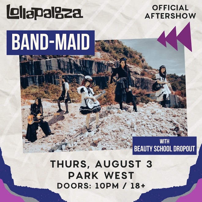 BAND-MAIDが、米国3大野外フェスのひとつ<Lollapalooza Chicago>本公演に加え、Official After Showへも出演することが発表された。