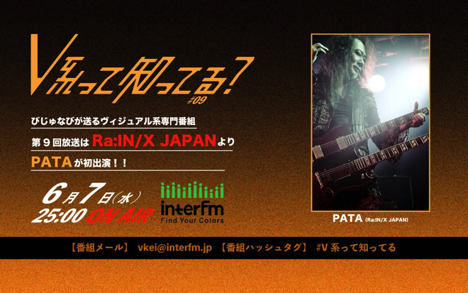 PATA(Ra:IN/X JAPAN)が、6月7日深夜に放送されるinterfm『#V系って知ってる?』の第9回に出演する。