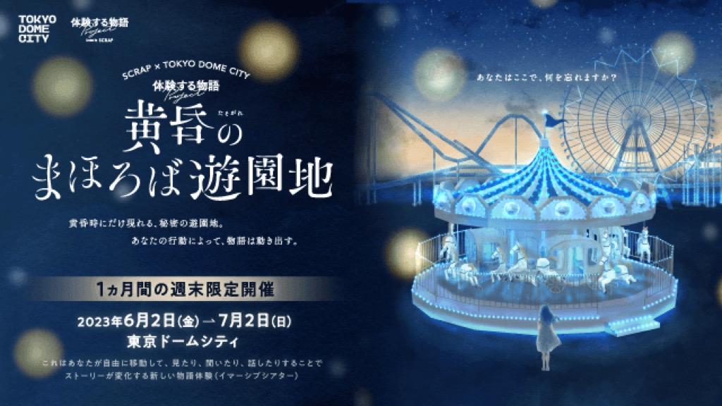 「体験する物語project」は、参加者自身が物語の登場人物と直接会話したり、触れ合ったり、自ら考え行動を起こすことで、共に1つの物語を作り上げる体験型イベント。最新作『黄昏のまほろば遊園地』は東京ドームシティにて6月3日(土)からの開催となる。(※台風のため2日開催予定から延期)